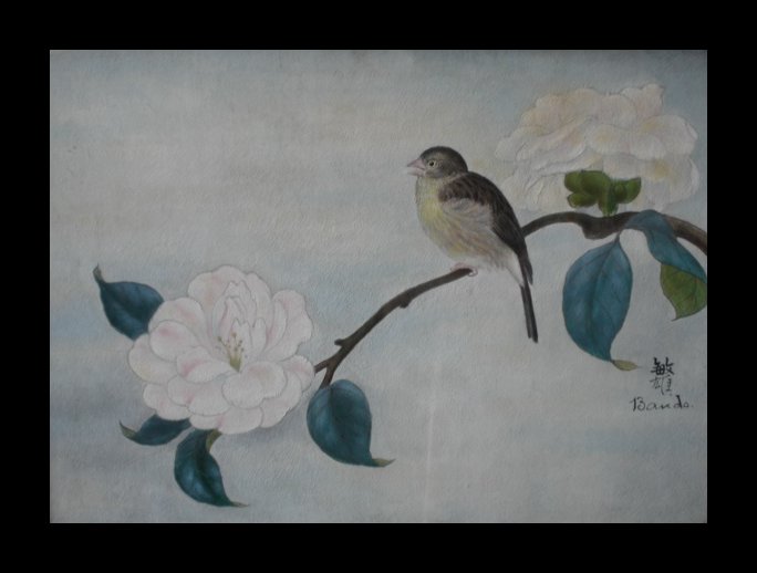 While a Japanese flair is certainly indicative of a Bando original, he painted a number of different subjects often. Still-life flowers in vases seem to dominate his oeuvre, many without titles.