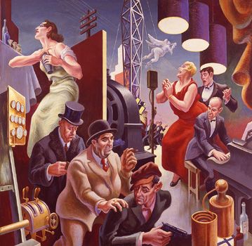 During the 1920s Benton returned to New York City to resume working as a fine art artist. Benton defined himself as an “enemy of modernism” and promoted the Regionalist movement. Benton received several commissions, including his El Greco-inspired murals for the New School for Social Research in New York City.