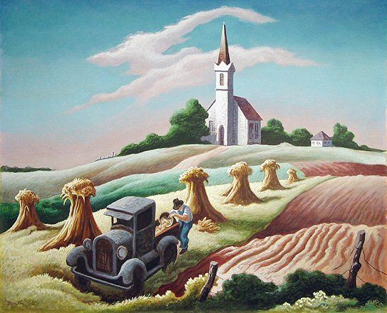 Living in the Midwest, it was easier for Benton to access rural America. Benton persevered at painting small-town America, in its beauty and despair. In 1937 Benton published his autobiography, An Artist in America, describing his philosophy as a painter.