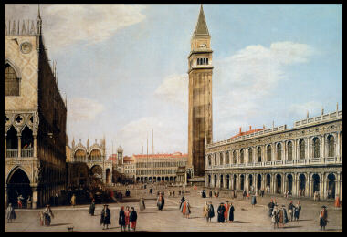 One of his most importrant patrons was an Englishman named Joseph Smith, who lived in Venice. Through the aid of Smith, Canaletto sold a large collection of his work to King George III, and by the 1730’s, the demand for Canaletto’s work was so high that he hired studio assistants. Canaletto later moved to London and painted views of the Thames. He moved back to Rome in 1751 and was elected to the Venetian Academy of Fine Arts in 1763. Canaletto died of fever at the age of 71, and today, his works are still widely displayed in public and private collections throughout Europe.