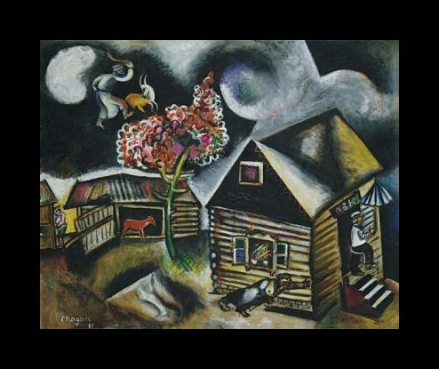 In 1923, Chagall truly found himself artistically while in Paris. Some of the movements of the time came as a shock to him. Although he sometimes experimented with them briefly, he eventually discarded them, opting for his own style, a style that was imaginative and almost magical, incorporating bold color schemes.
