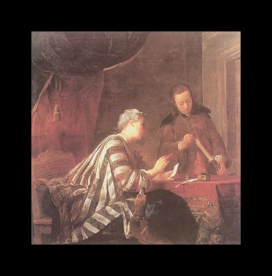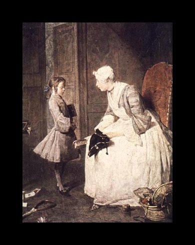 Born in Paris on the cusp of the new century, Chardin had virtually no early formal artistic training and was self-taught. He studied and was influenced by the 17th century low country masters, and eventually created a Rococo style for himself. He generally painted historical subjects and every day domestic scenes.