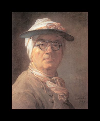 In the last years of his life, Chardin’s eyes began to fail so he turned to pastels. While these paintings were not as highly valued during his lifetime, they are truly coveted now. Chardin also created a number of self-portraits which are highly recognizable. He is pictured strangely wearing scarves around his head and neck, and even what looks like a ladies hat in one, as well as a pair of spectacles.