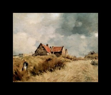 He returned to France in 1875 but before doing so he traveled to Italy and Holland. He settled on the Channel cost in a place called Equihen and concentrated on his painting. In 1876 he submitted a major work to the Salon entitled The Boatyard. His paintings until 1888 combined religious themes with contemporary settings and after that he turned to pure landscape painting in a style similar to that of Camille Corot.He also produced paintings which drew on his memories of his native Normandy. In 1880 he was awarded a First Class medal by the Salon.