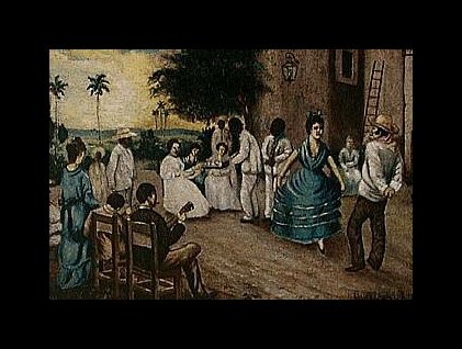 One of Chartrands best known works is more of a city scene with people in colonial-era dress, “El Baile”.