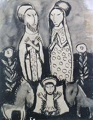 First, those years from the 1920’s to 1935 when she was influenced by her master: hard stroke, bordered of width, black features, angled face features, big eyes of deep ad firm pupil, all that in glorification at the type of the half-breed between indigenous and Spaniard. Toward 1935 appears the influence of the Mexican mural style: Heads of big size that remind the same type that Siqueiros painted and compositions with reminiscent of a Siqueiros mixed bag, and of Greco, as we can see it in the painting “The prayer in the garden” in which a group of sleepy Apostles of sort of Mexican type conception, appeared completed by the dawn praying figure of Christ, similar in theme, title, composition and colorful to the namesake of Cretan in the Budapest Museum of Beaux Arts.