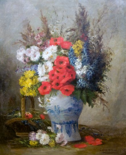 Van Coppenolle is best known for his highly detailed, still life paintings. Van Coppenolle painted with a colorful palette, creating compositions with emotion and zest. While floral arrangements were Van Coppenolle’s most studied subjects, he also did many meticulous studies of hens, roosters and other farm animals. His paintings are known for being vibrant and energetic.