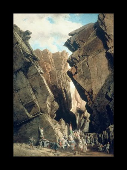 The travelling party arrived in Cairo, and spent several weeks there, before setting off to cross the Sinai desert. After three weeks they reached the monastery of St Catherine. The party spent a number of days there, sketching, and getting used to their surroundings. Dauzats described his time there as, “the most perfectly spent and happiest of my life.” The monastery of St. Catherine was very popular with artists, and writers of the nineteenth century. Dauzats was to produce a painting of the Monastery, entitled, “Monastery of St. Catherine, Mount Sinai,” which now hangs in the Louvre. Art critics have commented that Dauzats training in the theatre, together with his ability to create the ‘picturesque,’ within the confines of a stage is very apparent in this magnificent imposing painting of the monastery.