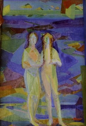 Davies commonly painted figures in an unearthly or fantasy world. Davies referenced former art movements including Art Nouveau, Cubism and Tonalism. Davies showed frequently and organized an extensive show at the Armory in New York in 1913. The show made a major impact on American Art, and served as one of the first Modern art exhibits in the United States. Davies travelled extensively in Europe in the United States, making visits to Holland, France, England, and the West of the United States.