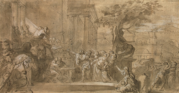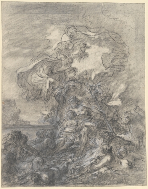 Pen and black ink, white gouache over chalk drawing 65.6 x 46.4 cm