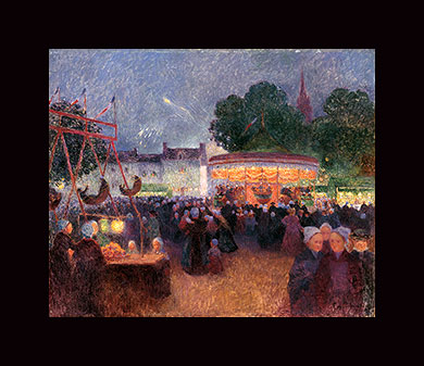 In 1893, Puigaudeau married and had a daughter shortly thereafter named Odette. During the subsequent years, he continued to live in Pont-Aven and became friends with Paul Durand-Ruel and Edgar Degas. During this time, Puigaudeau painted compositions of lively merry-go-round scenes and fun fairs, which some art critics claim to be his most beautiful.