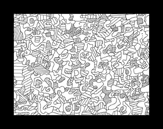 Dubuffet was truly interested in every aspect of art that he could learn about, and was a highly experimental artist. He went through a number of phases learning about texture, primitive art and landscapes and did intense studies of each which reflected in his work. He even delved himself into the work of mentally ill patients and was fascinated with their spontaneous and often anguished work. One of his most notable experimental stages was creating the Hourloupe series, which were essentially created with ballpoint pen. Through this style, Dubuffet proved that color was unimportant by using only red, black and blue ink. The Hourloupe style would later influence his sculptures greatly.