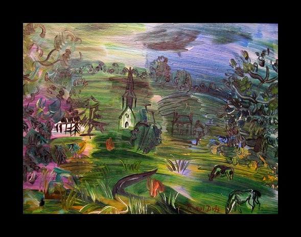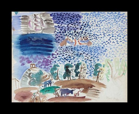 Many critics note that Dufy was a master in the use of color, and did not let the classical limitations and rules of color theory apply to his paintings. Sometimes a painting of Dufy’s would be composed of one sweeping color over the entire canvas, bleeding into sections where it couldn’t. Some critics called this work sloppy or uninspired, but it was a style all it’s own and set him apart from other artists, and through this color theory created bright and cheerful compositions. Dufy would also paint through a perspective all his own, be it from above or afar, and break the traditional rule of painting what you see.