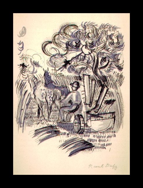 Raoul Dufy was born into a large family in Le Havre, France. He was the older brother and mentor of fellow painter Jean Dufy. At the age of 14, Dufy left school to work in a coffee company, but at 18, was able to begin classes at the Ecole des Beaux-Arts in Le Havre. Dufy would go on to spend a year in the military and in 1900, won a scholarship to go to the Ecole des Beaux-Arts in Paris.