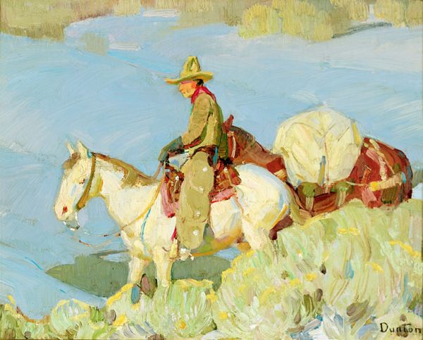 Dunton’s paintings are now in collections across the country. The The Stark Museum of Art, The Eiteljorg Museum, Kit Carson Memorial Museums, Museum of New Mexico, Panhandle-Plains Historical Museum, The Rockwell Museum, and the San Antonio Art League own most of Dunton’s paintings. Dunton is an important member of the Taos Society of Artists. Do you think you own a painting by William Herbert (Buck) Dunton? Contact us. We are the William Herbert (Buck) Dunton experts.