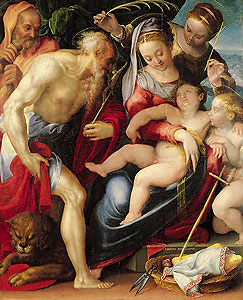 Prospero Fontana was an Italian painter of the late Renaissance. Fontana was born in Bologna, and became a pupil of Innocenzo da Imola. He afterwards worked for Perin del Vaga in the Palazzo Doria in Genoa. Towards 1550, it is reported that Michelangelo introduced him to Pope Julius III as a portrait-painter; and he was pensioned at the pontifical court. He later joined Vasari’s studio in Florence, and worked in frescoes at the Palazzo Vecchio (1563-65). He is an early representative of the Bolognese school of painting. Sabbatini, Sammachini and Passerotti were three of his principal pupils or colleagues. His daughter, Lavinia Fontana, was also a prominent painter of mostly conventional religious canvases.