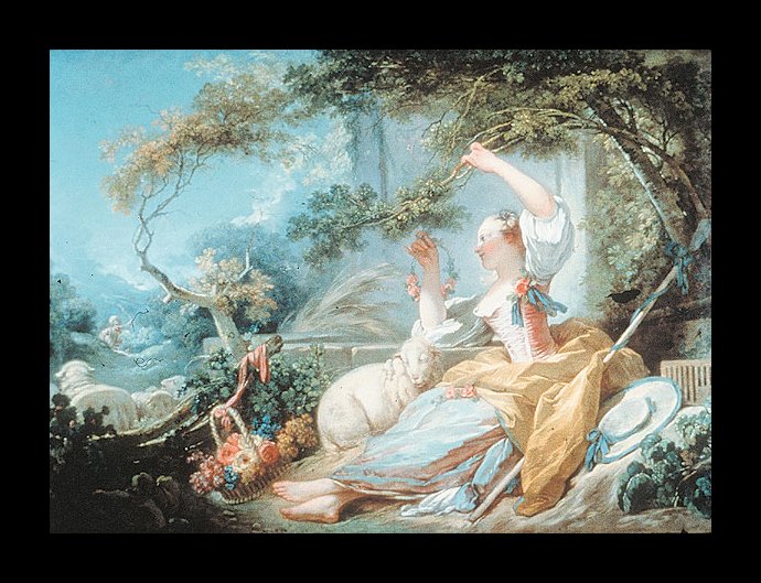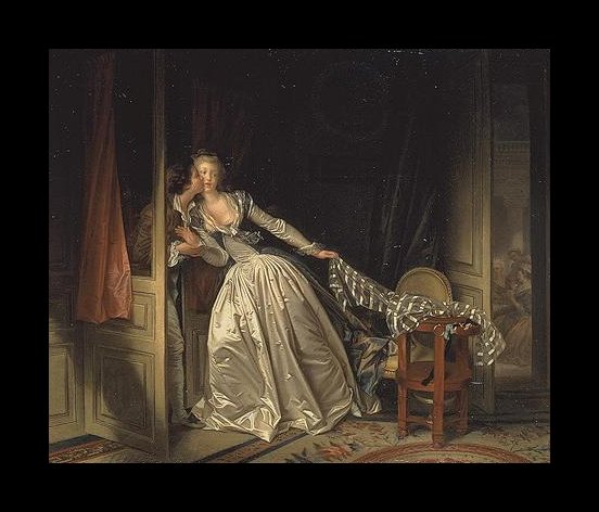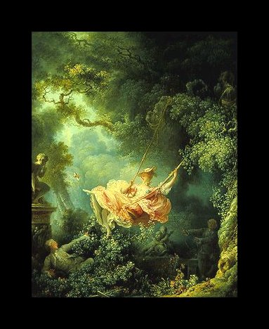 Upon Fragonard’s return to Paris, he began to gain many patrons, including the Madame de Pompadour. He was accepted into the Academy in 1761, and continued to paint pictures of wealthy Parisians flamboyantly engaged in the light and airy high life.