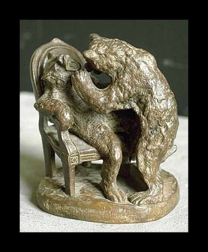 The Bear Dentist While some of his pieces have a smooth and naturalistic surface finish, he also had a much rougher style where tool marks and the raw aspect of the clay he worked with are clearly visible. One would compare this to palette work and the use of strong impasto in certain paintings. Less common than his bronzes he also produced ceramic pieces and clay reliefs, some of which are patinaed or gilt. Fratin also created walking stick handles and fancy boxes, such as jewelry chests and decorative bronze parts for furniture.