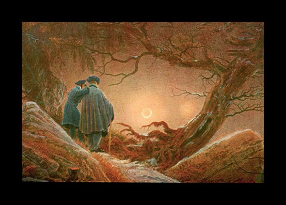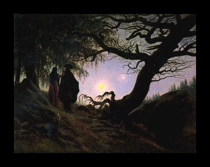Though Friedrich painted in a somewhat Realist style, his art is considered anti-Classical. His use of light (including moonlight) was a pre-cursor for future Impressionist landscape painters. His motifs were almost fairytale-like, and his love for gothic and medieval themes was often fueled by friend and author Goethe. Friedrich’s own life was at times shrouded in mystery, as he was described by others as having a mystical quality, and led an almost monk-like lifestyle. His quarters would be minimal and he led a very solitary life, but eventually married and had children just the same.