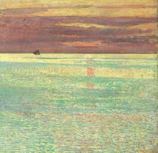 Hassam was interested in art at an early age and showed a great deal of talent among his childhood peers. When a Boston fire destroyed his father’s business in 1872, Hassam was forced to drop out of high school in order to help support the family. Hassam spent a short amount of time working as an accountant for the publishing company, Little Brown and Company. The job was a poor fit for Hassam, who longed to pursue a career as an artist. Hassam eventually found a more suitable job working for a wood engraver. Hassam was skilled at his new line of work and quickly excelled. Hassam was given more responsibility and started designing commercial engravings.