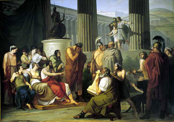 In 1814, Hayez was living in Rome and later moved to Naples . While in Naples , he was commissioned by Joachim Murat to paint a major work which depicted Ulysses and the court of Alcinous.