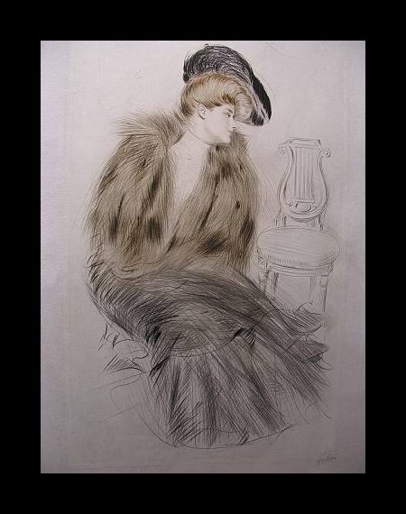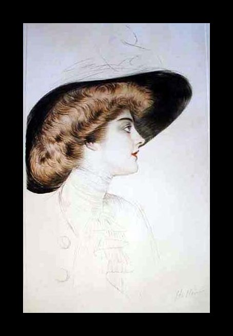 In particular, Helleu was fond of sketching women in elegant hats. He would employ the dry point method of sketching, as opposed to charcoal or pencil. It was said that he used a diamond point pen to improve his etchings and drawings. To add color, Helleu would also employ pastels and crayon pencils.