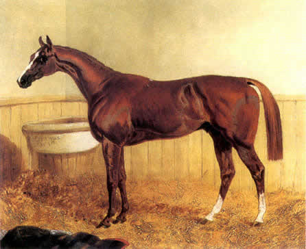 Herring, born in London in 1795, was the son of a London merchant of Dutch parentage, who had been born overseas in America. The first eighteen years of Herring’s life were spent in London, England, where his greatest interests were drawing and horses.[1] In the year 1814, at the age of 18, he moved to Doncaster in the north of England, arriving in time to witness the Duke of Hamilton’s “William” win the St. Leger Stakes horserace. By 1815, Herring had married Ann Harris; his sons John Frederick Herring, Jr., Charles Herring, and Benjamin Herring were all to become artists, while his two daughters, Ann and Emma, both married painters.