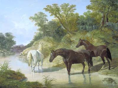 A highly successful and prolific artist, Herring ranks along with Sir Edwin Landseer as one of the more eminent animal painters of mid-nineteenth (19th) century Europe. The paintings of Herring were very popular, and many were engraved, including his 33 winners of the St. Leger and his 21 winners of the Derby. Herring exhibited at the Royal Academy from 1818-1865, at the British Institution from 1830-1865, and at the Society of British Artists in 1836-1852, where Herring became Vice-President in 1842.