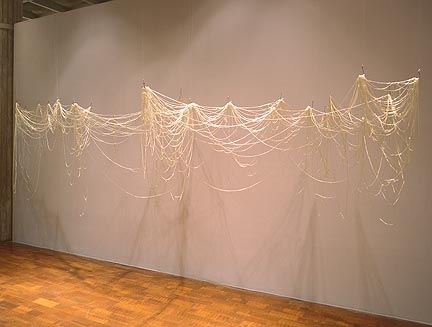 By 1965 Hesse decided to return to New York and began making sculptural pieces with fiberglass, plastics and latex. Hesse exhibited with other 1960s “post-minimal” artists and began teaching at the School of Visual Arts. In Hesse’s lifetime she only had one solo show, which was held at the Fischbach Gallery and was entitled “Chain Polymers”.