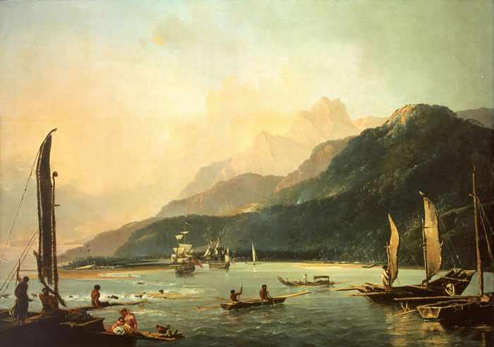 Most of the large-scale landscape oil paintings from his Pacific travels for which Hodges is best known were also produced after his return to London; he received a salary from the Admiralty for the purposes of completing them. These paintings are especially notable as being some of the first landscapes to use light and shadow for dramatic purposes. Hodges’ use of light as a compositional element in its own right was a marked departure from the classical landscape tradition. Contemporary art critics complained that his use of light and color contrasts gave his paintings a rough and unfinished appearance.