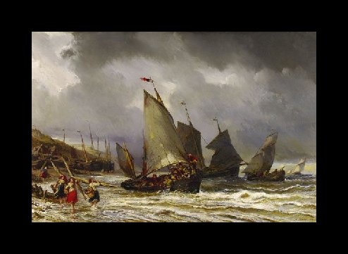 Eugene Isabey was a French Romantic painter born Louis Gabriel Eugene Isabey. Isabey was well-rounded and created landscapes, portraits and historical scenes with equal grace and beauty. Isabey was the son of painter Jean-Baptiste Isabey, whom he initially studied under and worked with. Like so many other painters, he spent his formative years as an artist studying the masters at the Louvre and also spent a great deal of time in Le Havre on the northern coast of France where he perfected his technique painting seascapes.