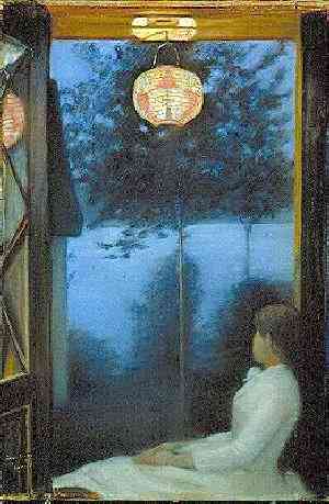 Oda Krohg, born Othilia Pauline Christine Lasson, was a Norwegian painter, and the wife of her teacher and colleague Christian Krohg. She had little formal art education, but she quickly absorbed the knowledge of the artistic environment she was a part of. Her debut was in 1886 with “Ved Christianiafjorden (japansk lykt)” (At the Oslofjord (Japanese light)), now in the National Gallery of Norway. Her first years as an artist are seen as an example of new romantic painting. Her later portrait works had another, more robust impression.