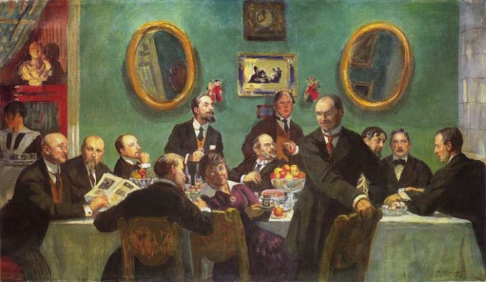 Boris Kustodiev was born in Astrakhan into the family of a professor of philosophy, history of literature, and logic at the local theological seminary. His father died young, and all financial and material burdens laid on his mother’s shoulders. The Kustodiev family rented a small wing in a rich merchant’s house. It was there that the boy’s first impressions were formed of the way of life of the provincial merchant class. The artist later wrote, “The whole tenor of the rich and plentiful merchant way of life was there right under my nose… It was like something out of an Ostrovsky play.” The artist retained these childhood observations for years, recreating them later in oils and water-colors.