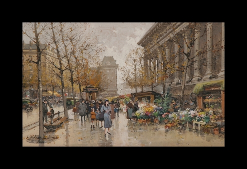 He was to produce paintings of his beloved Paris all his life, and particularly liked to portray the city in Autumn and Winter. He was to go on to produce countless paintings of the monuments of Paris such as the Arc de Triomphe and the Louvre. Many of his paintings tell a story, in that they show what Paris life of the early 1900s, was like, with its horse drawn carriages, trolley cars, bustling boulevards, and its markets. In a sense he was a recorder of the history of the city.