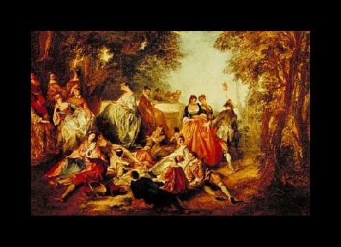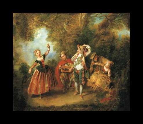 As a student under Gillot, Lancret learned the style of painting the “fete galante”. He met with much commercial success by depicting French social elite engaged in frivolity and fun, hence the “fete” or “party” theme to a number of his paintings. Even though he adopted this technique from his instructors, Lancret chose a color palate of his own, warm in yellows and reds, which set him apart.