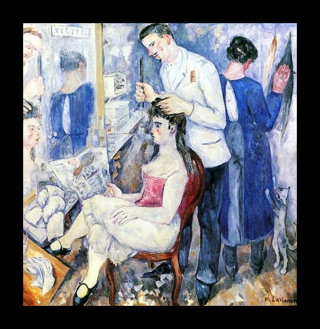 Initially, Larionov painted in an Impressionist style, creating pastel hued landscapes in the Impressionist hand as early as 1902. However, a visit to Paris in 1906 would inspire him to shift his style to that of a Post-Impressionist, followed by a more Neo-Primitive style. This new interest in the Neo-Primitive was also a reflection of his interest in Russian sign painting.