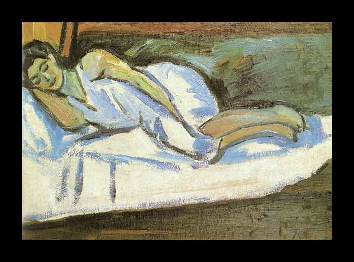 Larionov finally settled in Paris in 1918, and lived there until his death in 1964. He continued to paint and create graphic art and theatrical design, as well as publish written work and create book illustrations. He sadly suffered a stroke in 1950 which left him severely handicapped, and unable to produce much work during the last 14 years of his life, and died in poverty.