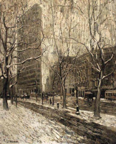 Lawson eventually returned to New York City, where started working with the future members of The Eight. In New York, Lawson lived on the Hudson River, north of the city. Lawson painted landscapes and cityscapes year-round, capturing the winter snows and early spring growth. The influence of Twachtman’s instruction remained apparent in Lawson’s work.