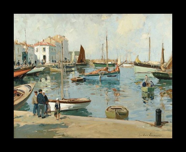 After he finished his academic training, Lecomte was offered and accepted a position as an official artist with the Minister de la Marine. He continued to paint for himself, nonetheless and annually exhibited his work at the salons. Watercolors, etchings and oil paintings of landscapes, seascapes and portraits dominated his oeuvre. He typically painted market and harbor scenes, particularly in Brittany. Like his father, he painted beautiful landscapes, and while their styles were similar, Lecomte veered more towards Impressionism while his father’s style was academic.