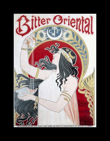 In 1889, Livemont returned to Brussels and began his career as an artist, creating paintings and prints. He began to work with poster art in 1890, but by 1900, LivemontÕs career as a poster artist was in full swing. While many poster artists had a workshop of students or assistants helping to engrave their images during print making, it is said that Livemont always cut the lithography stones himself. Like some Art Nouveau artist, Livemont also borrowed from classical Oriental styles sometimes if it fit the purpose of his posters.