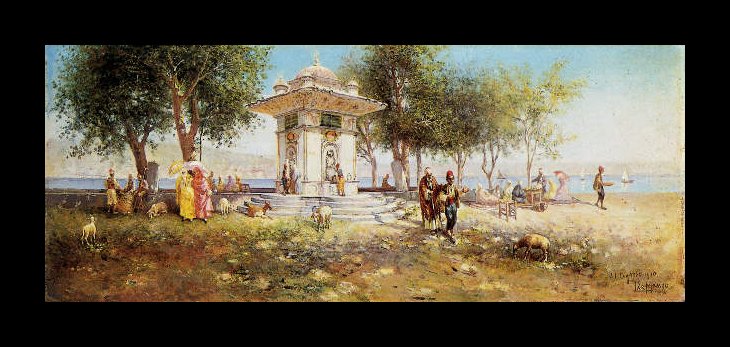 Mango spent nearly 50 years living in Istanbul, Turkey, arriving during the reign of the Sultan Abjulhamid II. It is said that while he lived there, he created some 1,500 paintings and drawings in his Beyoglu studio. Mango lived in Istanbul until his death in 1930, and painted in the plein air technique, as well as in his studio. He was forced to leave briefly in 1911 during the Tripolitanian War, but returned in 1912.