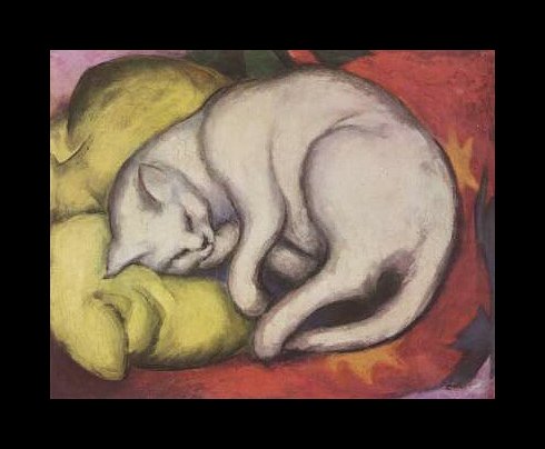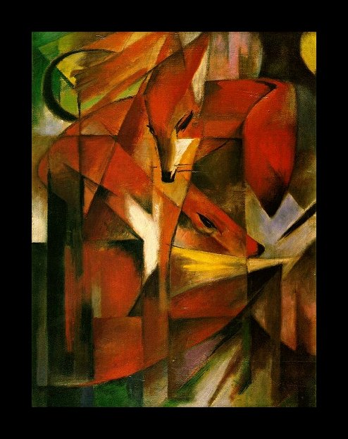 One way to tell for sure if you have an original Marc, is to look at the subject matter. Animals are obviously his forte, but he could have also painted a great deal of other things while learning at the Munich Academy (late 1800s-early 1900s). A very small portion of his work, mostly of dogs, appears to have been painted with an Impressionistic hand, such as “Dog Lying Down”. In these paintings, his colors are far less vibrant, and his style leans more to the Romantic side. They contrast greatly from his later work with Abstract ideas. His geometric designs are clearly from Cubist ideals and his colors and themes are a result of his affiliation with the Blue Riders.