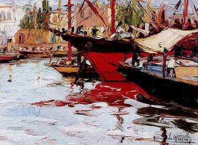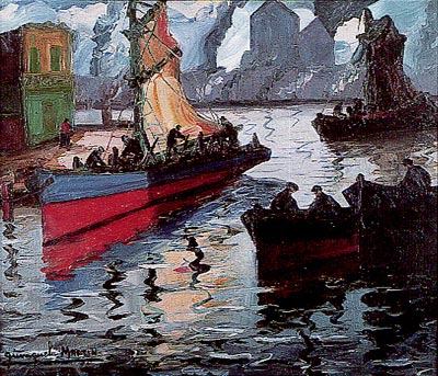 Entre sus obras se destacan: Tormenta en el Astillero (Museo de Luxemburgo, París), y Crepúsculo en el astillero (Museo de Bellas Artes Pedro de Mendoza).