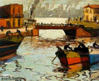 Pintor y muralista argentino. Fue uno de los “Pintores de La Boca” (uno de los barrios de su ciudad natal). Con un estilo naturalista, la temática de su obra giró, sobre todo, en torno a los barcos y las labores portuarias en general. Se le consideró el pintor del riachuelo por su tratamiento de los temas portuarios.