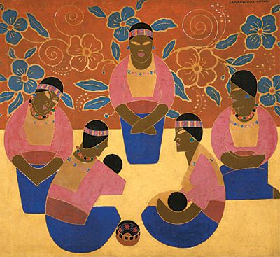 Carlos Mérida was a Guatemalan artist who spent much of his life and career in Mexico. Mérida grew up in Queltzaltenango, Guatemala to a family of Mayan and Zapotec descent. Mérida’s heritage was often a prevalent subject in his work.