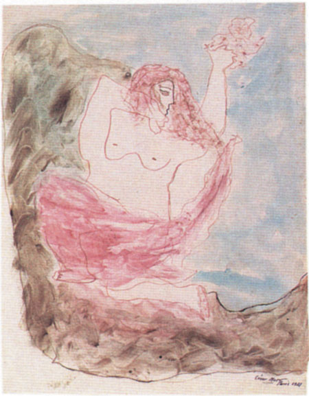 In 1925 he travels to Paris, inevitable stop for most of the artists of any activity. Then César Moro tries different artistic areas, attends classes of ballet in the Academy of Ballet, and writes poems. In 1926 he offers his first pictorial exhibition and the second one in 1927, both received favorably reviews. In 1928 he discovers the surrealism and begins to write poems in French language. In the period between 1928 and 1933 he continues with his European activities as much in the scope of painting but mainly in poetry (Ces poèmes) and returns to Lima at the end of 1933. In 1935 he organizes with the poet Adolph Westphalen, the first surrealist exhibition in Latin America, in the Academia Alcedo of Lima. Besides Moro, some Chileans like Jaime Dvor, Waldo Parraguez, Gabriela Rivadeneira, Carlos Sotomayor and Maria Valencia also take part of this exhibition.