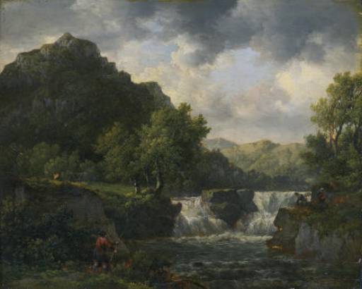 Much of Nasmyth’s work, a great deal of which is undated, depicts his native Scotland, which he continued to paint even after moving to London in 1810. Like his father, he was heavily influenced by the Dutch masters of the 17th century, particularly Meindert Hobbema and Jacob van Ruysdael (a large number of works by both men were displayed in London galleries during Nasmyth’s lifetime). Nasmyth died of pneumonia-like symptoms, which he contracted shortly after painting a scene just outside London.
