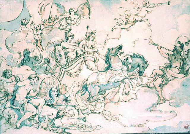 Charles Joseph Natoire was an 18th century French rococo artist who mainly painted decorative studies for the French Crown, including religious and mythological scenes. He won the Prix de Rome in 1721 and studied in Rome for five years. He was later named Director of the French Academy in Rome, and during this time, almost completely stopped painting.