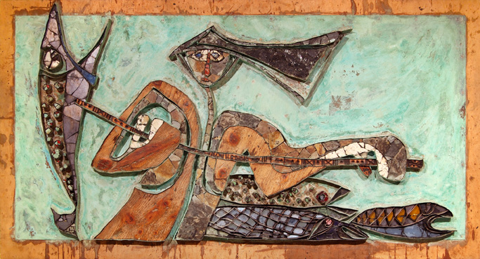 Rolf Nesch was a German-Norwegian artist and is regarded as one of the greatest and most original printmakers of the 20th century. Nesch worked in a range of disciplines beginning as a painter, and until the end of the 1920s, it was the discipline he concentrated on most. When he left Germany and moved to Norway in 1933, he discarded canvas and paintbrushes for good and produced, the following year, his first “so-called” material picture, and also took up sculpture. Apart from drawing, which was his natural tool and means of expression, it was printmaking he devoted himself to the most and over the greatest number of years. Also, it is as printmaker that Rolf Nesch made his most significant contribution, not merely as a technical innovator who discovered the potential in new materials and methods, but also from the artistic point of view.