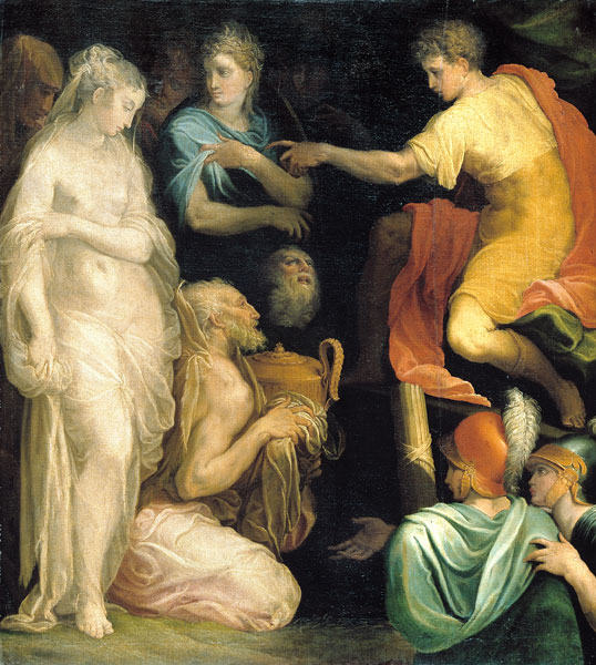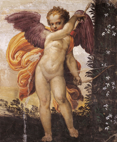 Nicolò dell’ Abate was born in Modena and was the son of a sculptor. He trained in the studio of a local Modenese sculptor and his early influences included Ferrarese painters, such as Garofalo and Dosso Dossi. He specialized in long friezes with secular and mythological subjects, which can be found in the Palazzo dei Beccherie (1537), in various rooms of the Rocca at Scandiano, most notably a courtly ceiling concert composed of a ring of young musicians seen in perspective, sotto in su (early 1540s), the Hercules Room in the Rocca dei Meli Lupi at Soragna (c.1540–43), and possibly the loggia frescoes removed from Palazzo Casotti at Reggio Emilia.
